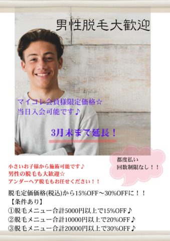 3月末まで開催中!脱毛キャンペーンマイコレ会員様限定!